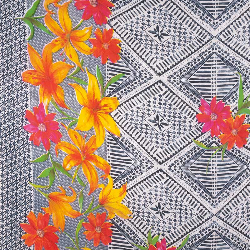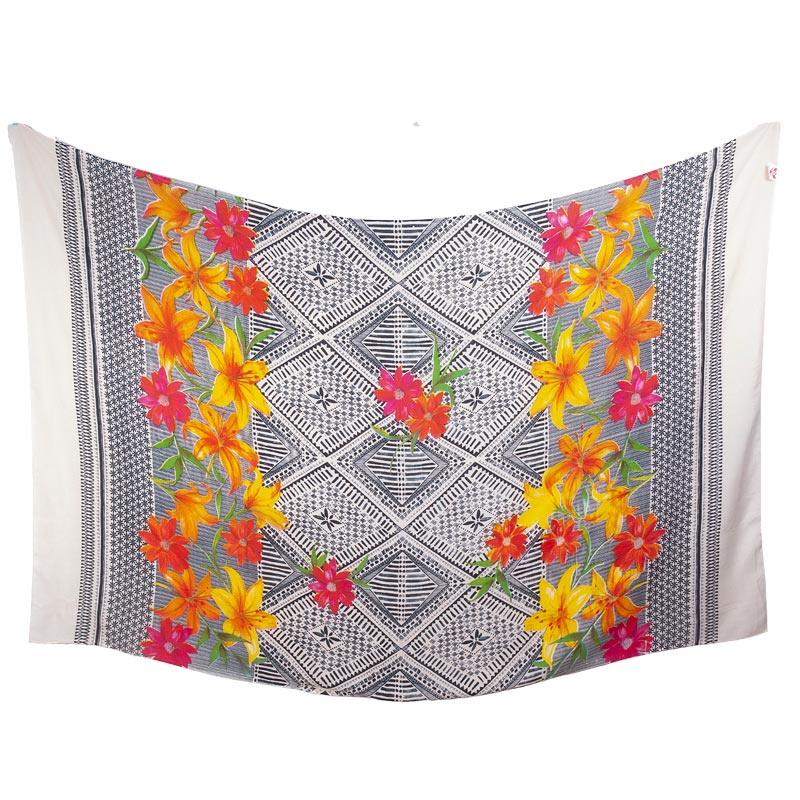 リゾートフラワー柄 トライバル【ブラジルカンガ】大判クロス ホワイトマルチ パレオ