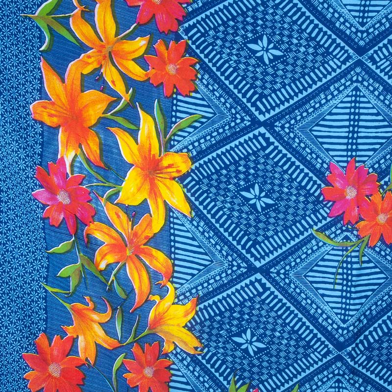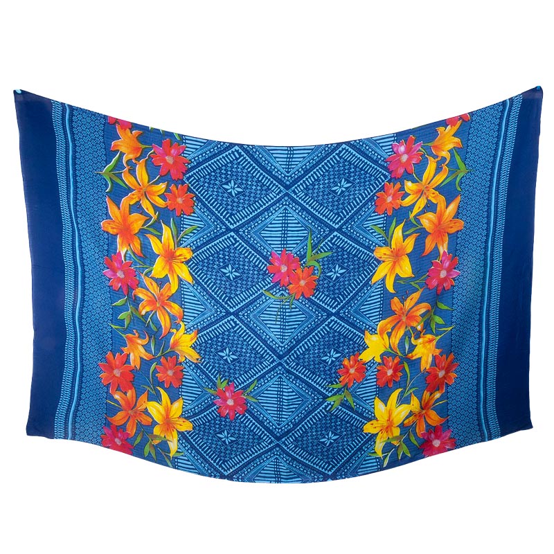 リゾートフラワー柄 トライバル【ブラジルカンガ】大判クロス ブルーマルチ パレオ