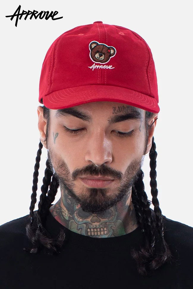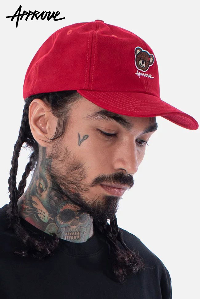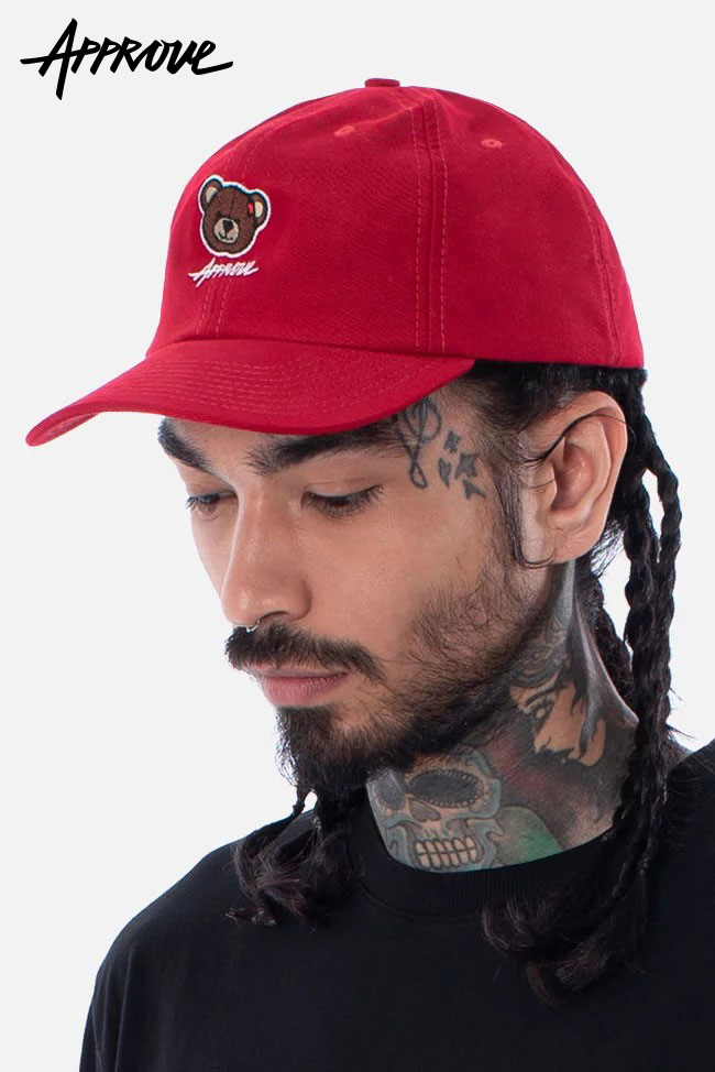 ブラジル発カジュアルストリートブランドAPPROVE(アプルーヴ)。ジェンダーレスでユニークなウェアがコンセプト。ネイマールやアーティストなど多数の愛用者がいるブランドです。ベアーモチーフとロゴ刺繍デザインの調節可能ストラップバッククロージャータイプの帽子です。APPROVE BEARラインのダッドキャップ(レッド)です。