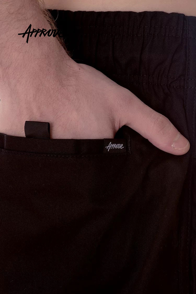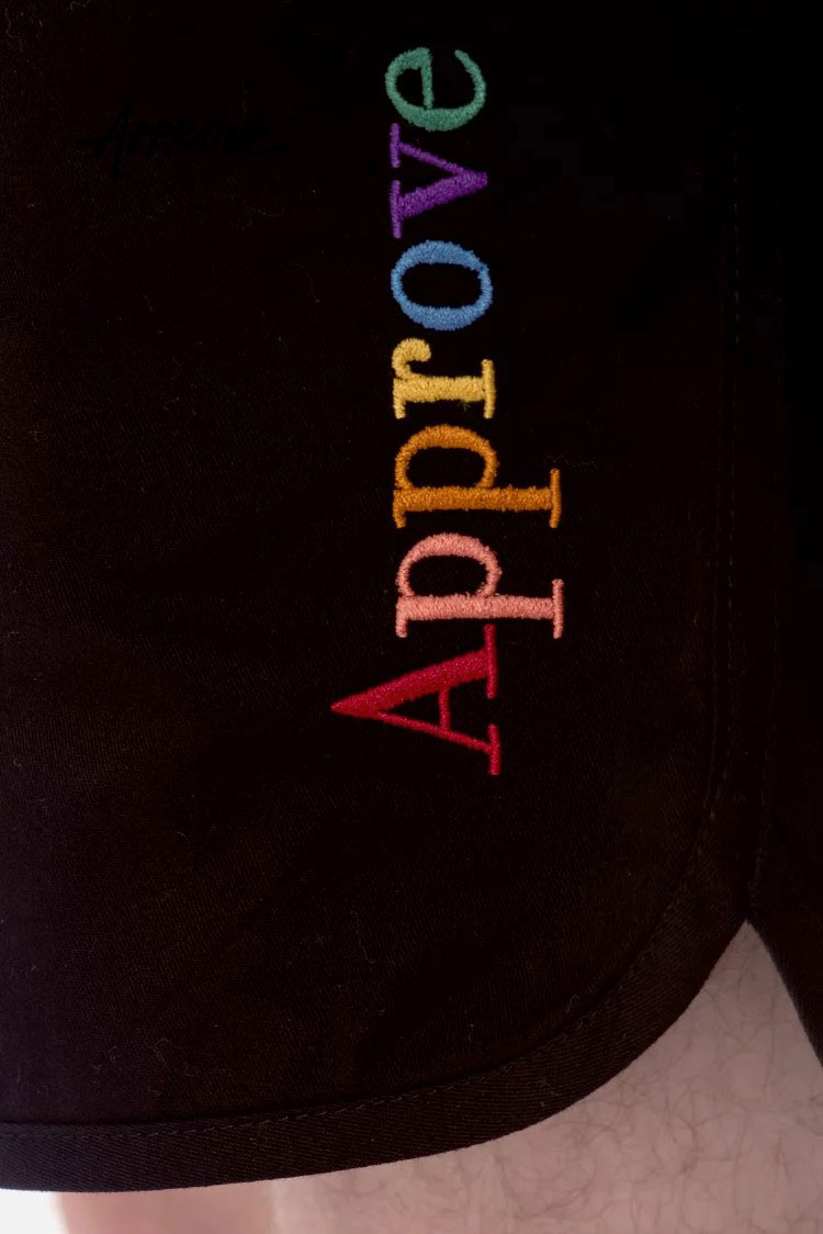 ブラジル発カジュアルストリートブランドAPPROVE(アプルーヴ)。ジェンダーレスでユニークなウェアがコンセプト。ネイマールやアーティストなど多数の愛用者がいるブランドです。サイドポケット とヒップポケットの3つポケット、ウエストゴムと調節紐でお好みのサイズ感でご着用いただけます。シンプルブラックのワンカラーにレインボーのロゴ刺繍がキャッチーなショートパンツです。
