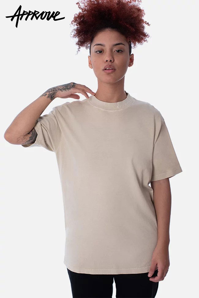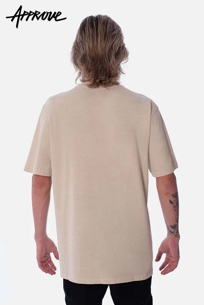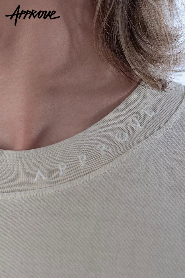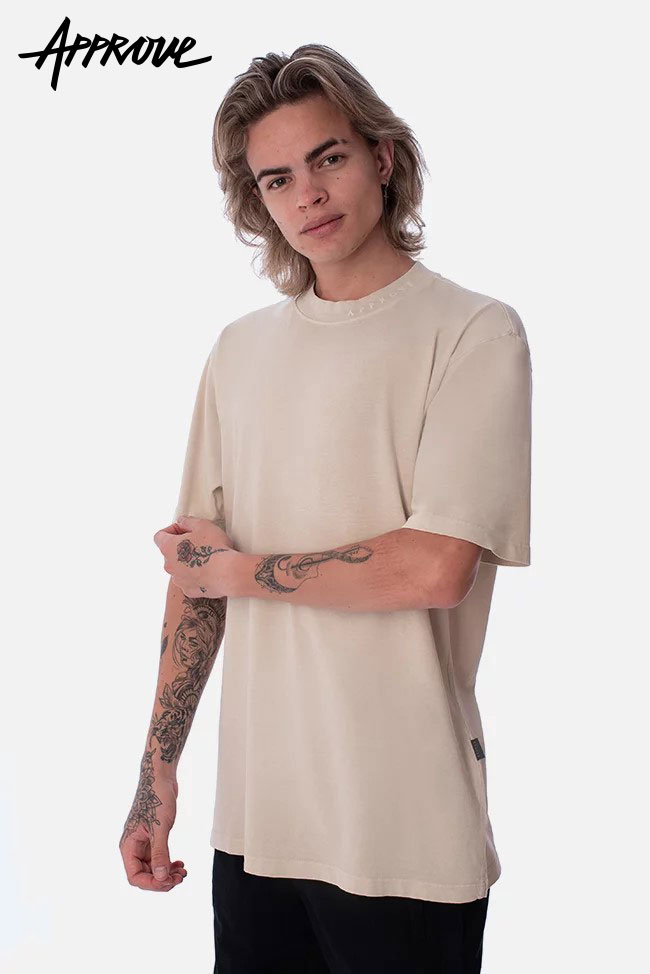 ブラジル発カジュアルストリートブランドAPPROVE(アプルーヴ)。ジェンダーレスでユニークなウェアがコンセプト。ネイマールやアーティストなど多数の愛用者がいるブランドです。アースカラーのくすみ系ベージュがお洒落なTシャツです。首周りのリブ部分に施されたAPPROVE CANVASラインのロゴ刺繍が大人な印象のアイテムです。