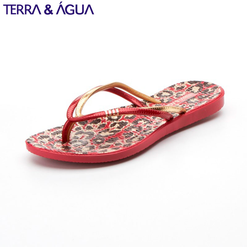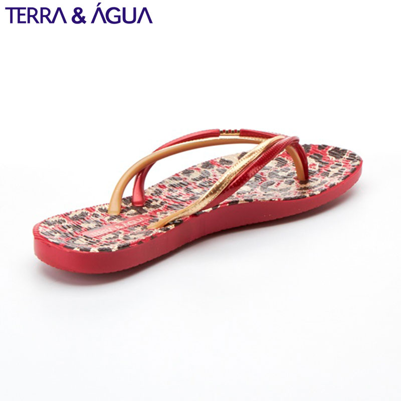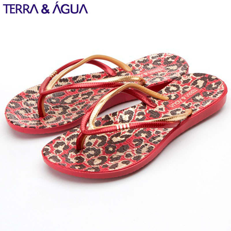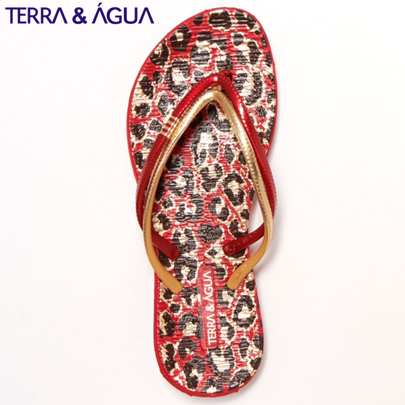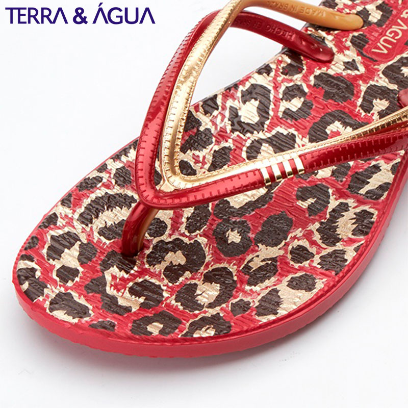 履き心地、耐久性、デザイン性を兼ね備えたブラジル発のビーチサンダル、TERRA & AGUA(テーハ&アグア)。足を綺麗にみせるダブルストラップのコンフォートビーチサンダルです。レオパード柄×レッドカラーで、足元から女性らしく!