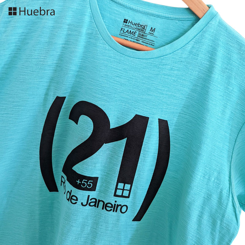 ブラジル、リオデジャネイロ発のカジュアルウェアブランドHuebra(ウエブラ)のポルトガル語フレーズTシャツです。ライトブルーが目を惹くお洒落なカラーのアイテム。エンボスタイプの布地なので、さらっと肌ざわりのよい着心地をお楽しみいただけます!ブラジルの番号の+55にリオの番号(21)がデザインされたユニークなウエブラのTシャツです。
