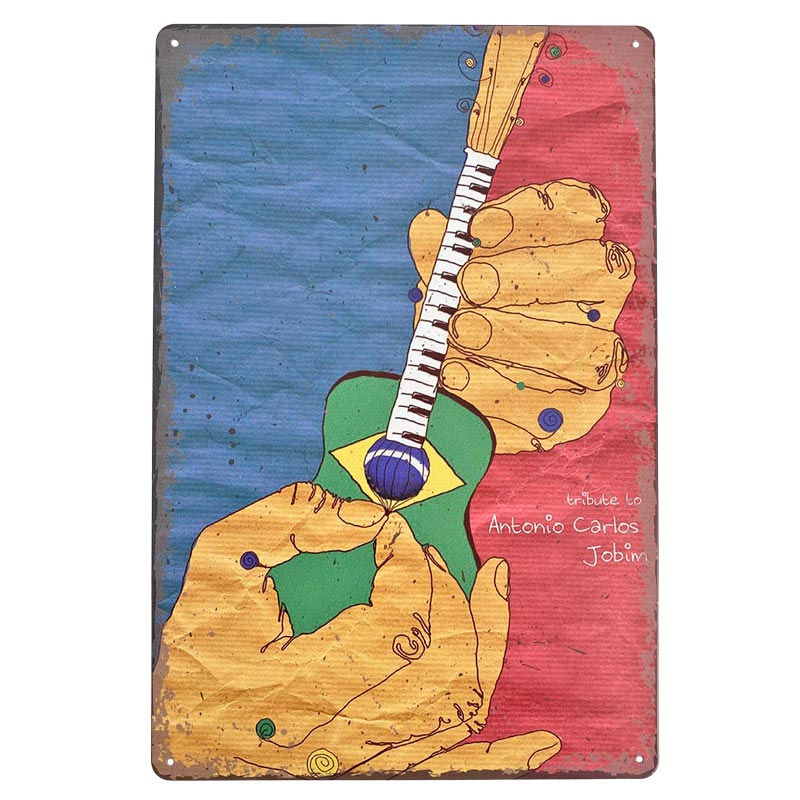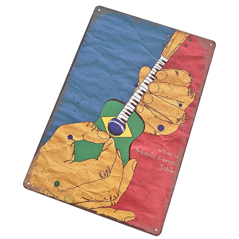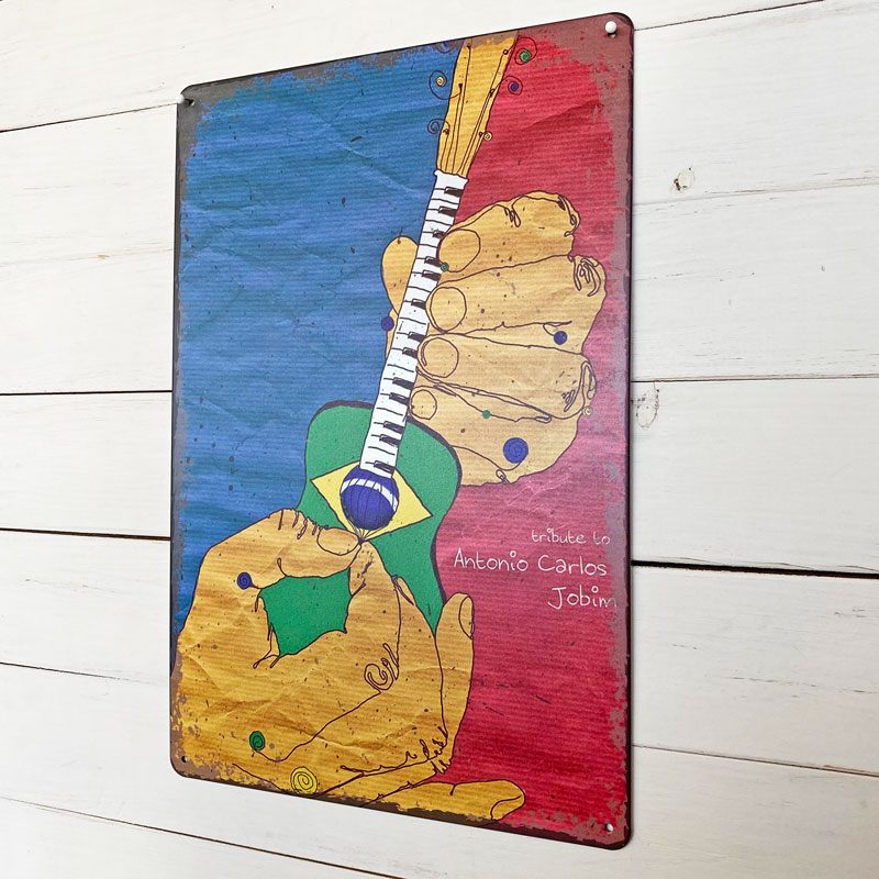 ブラジル音楽界に欠かせないAntonio Carlos Jobimをイメージしたデザインの看板です。レトロな雰囲気漂うお洒落なパネル。立てかけたり壁に飾ったりして良き空間を演出します。ブラジル国旗柄、ポルトガル語のレタリングも相まってブラジリアンミュージックが流れてきそうなデザインのアイテムです。