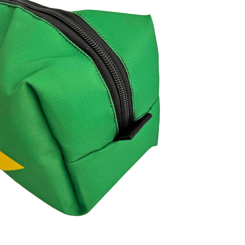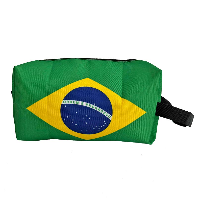たっぷり容量が嬉しいブラジル国旗デザインの角形ポーチです。ストラップ付なので手提げで使用でき、普段使いするものを持ち歩くのに便利です。クッション性があるので、壊れやすいものなども安心して持ち運びできるタイプのバッグです。