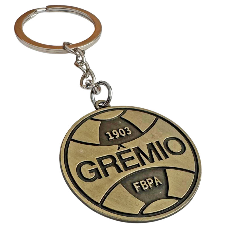 ブラジルサッカーの人気チーム、グレミオの両面エンブレムデザインのキーホルダーです。アンティーク感あるブロンズの GREMIOエンブレムが渋かっこいい!チェーンとリング部分はシルバーカラーです。重たくないタイプなのでお好きなところにつけてご使用いただけます。