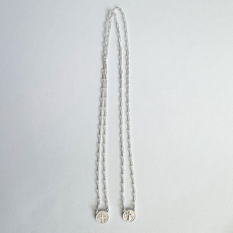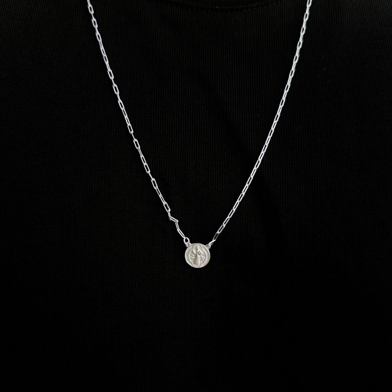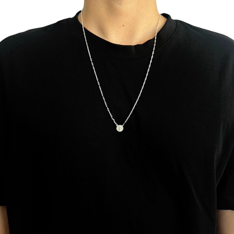 シルバー925のクリアな輝きが美しい、本場ブラジル製シルバーアクセサリーのエスカプラーリオです。普段使いしやすいサークル型のサンベントがデザインされた両面メダルヘッドタイプ。つや消し加工がお洒落。エスカプラーリオは、前後で身を守ってくれるお守りアクセサリーです。エスカプラーリオで胸元も首元もカッコよく決まる!ギフトにもおすすめのアクセサリーです。
