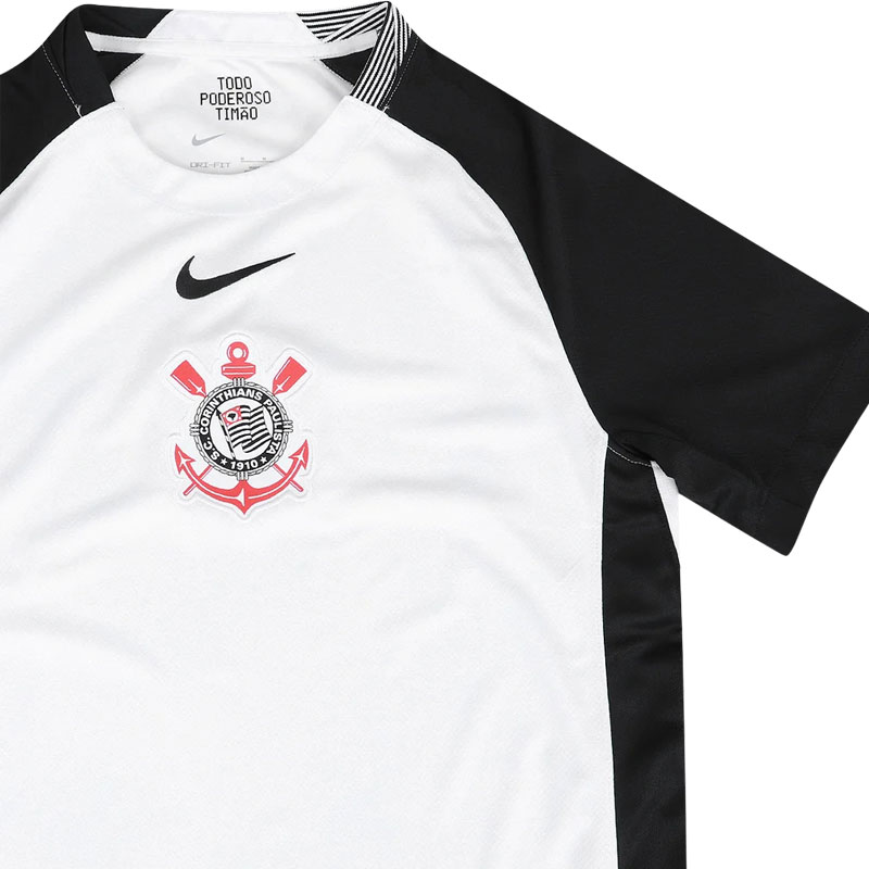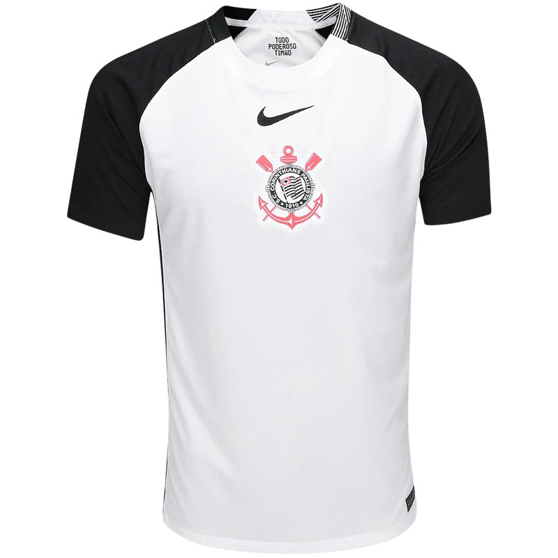 ブラジルリーグの人気クラブチーム、コリンチャンスの公式ホームユニフォーム。ラグラン調デザインの肩からサイドにかけてのブラックラインがお洒落なユニフォームです。ブラック×ホワイトのシンプルさが際立つカッコいいアイテム。NIKEが手掛ける速乾性に優れたコリンチャンス公式ユニフォームです。